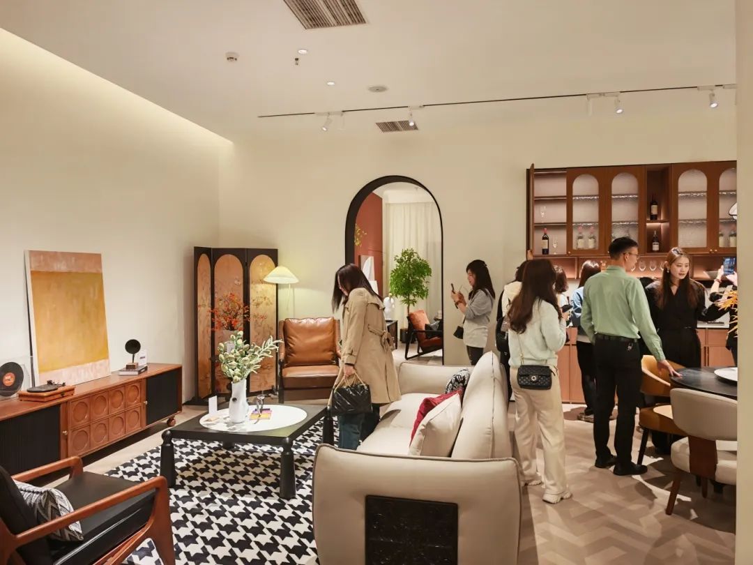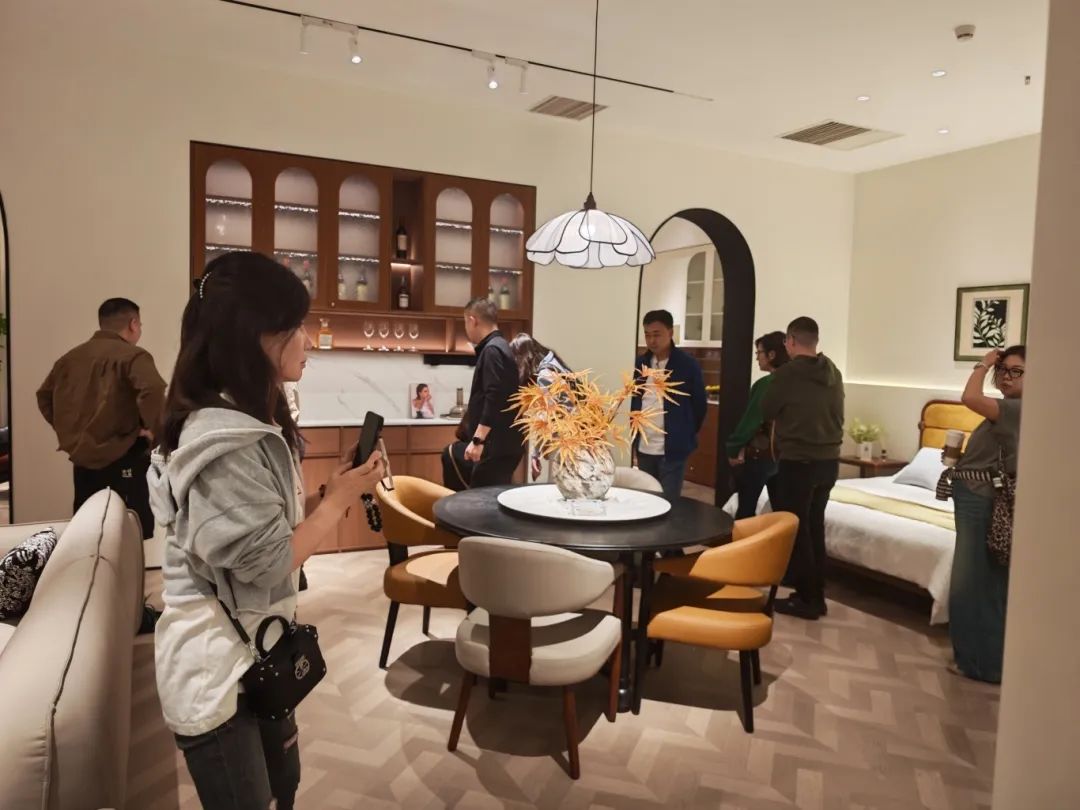 新品发布品鉴会现场,金年会金字招牌诚信至上中古全案凭借独特的空间布局,创新的时尚设计,优质的材料细节以及精心的场景营造,吸引了全国优秀经销商及业界嘉宾们的目光,他们沉浸在高级的美学世界里,感受创新与品质交织的魅力。金年会金字招牌诚信至上中古展厅里人潮涌动,众多经销商都对中古全案新品的创新设计称赞有加,现场签约不断,气氛热烈。