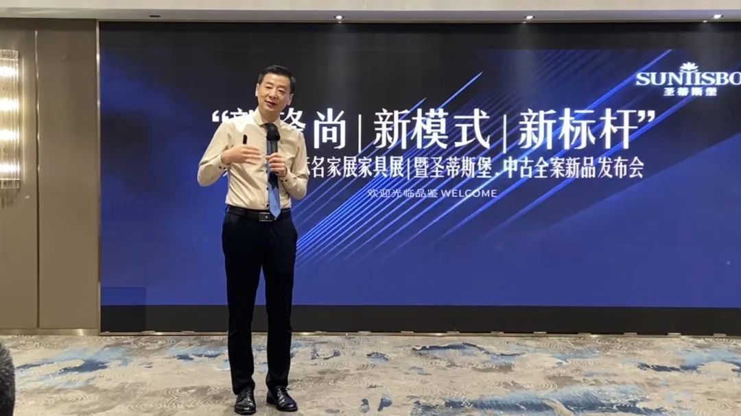 随后,集团董事长王健文先生就本次发布会进行了致辞。他对到场的经销商家人表达了热诚的欢迎和衷心的感谢。他从国家政策解读、行业趋势分析等方面进行了全方位多角度的剖析,他提到2025年,在国家宏观经济政策的指引下,家居行业充满机遇。他呼吁大家与时俱进,跟随市场发展新趋势,聚焦差异化竞争,把握行业脉搏,发挥品牌优势,与金年会金字招牌诚信至上携手共进,共赢新蓝海!